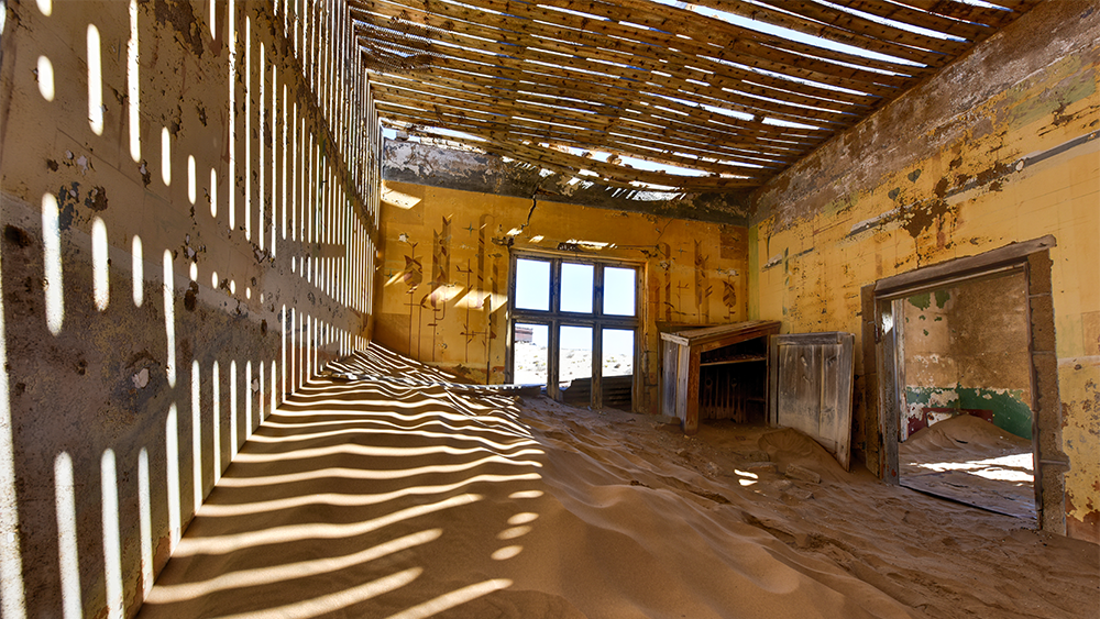 The abandoned ghost diamond town of Kolmanskop in Namibia, which is slowly being swallowed by the desert. Photo: Shutterstock.