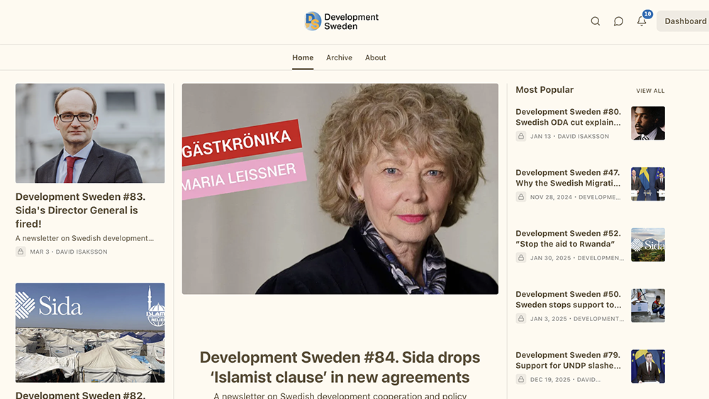Development Sweden #84. Sida drops ‘Islamist clause’ in new agreements